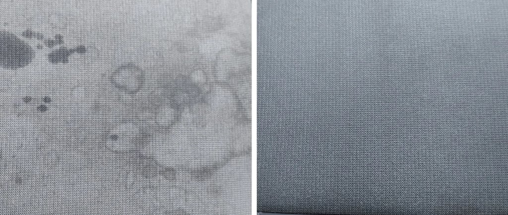 ⚠️ : Il est préférable de nettoyer l’ensemble du siège, même si seule une petite zone est tachée. Cela permet d’éviter les différences de couleurs ou les auréoles qui peuvent apparaître si seul un endroit est nettoyé. Ainsi, le tissu conservera un aspect uniforme et harmonieux.